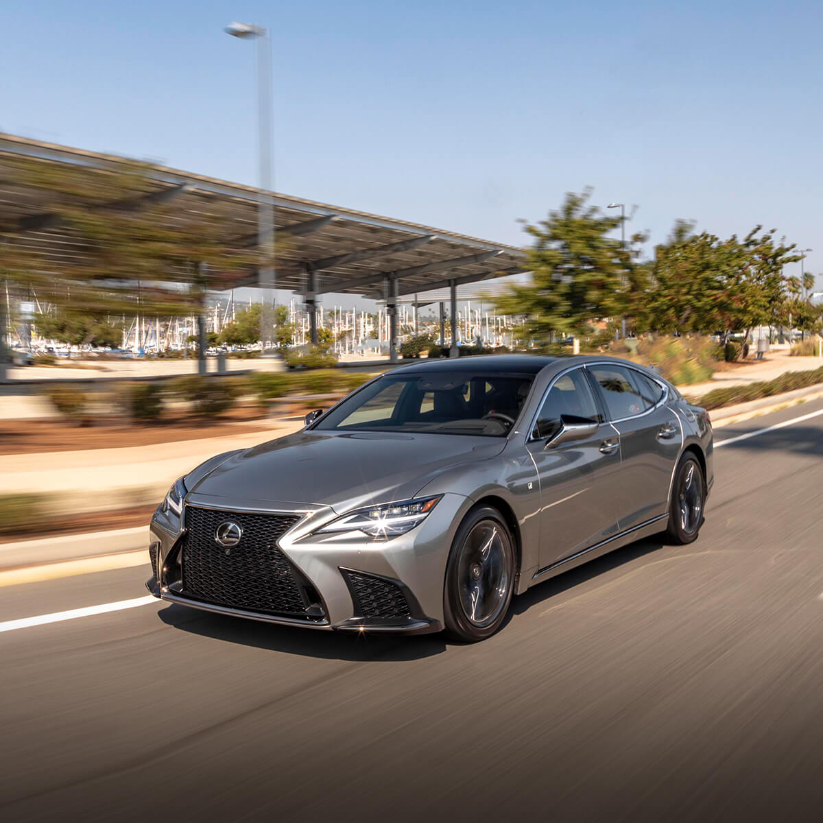 Silver Lexus LS being driven on the road.​